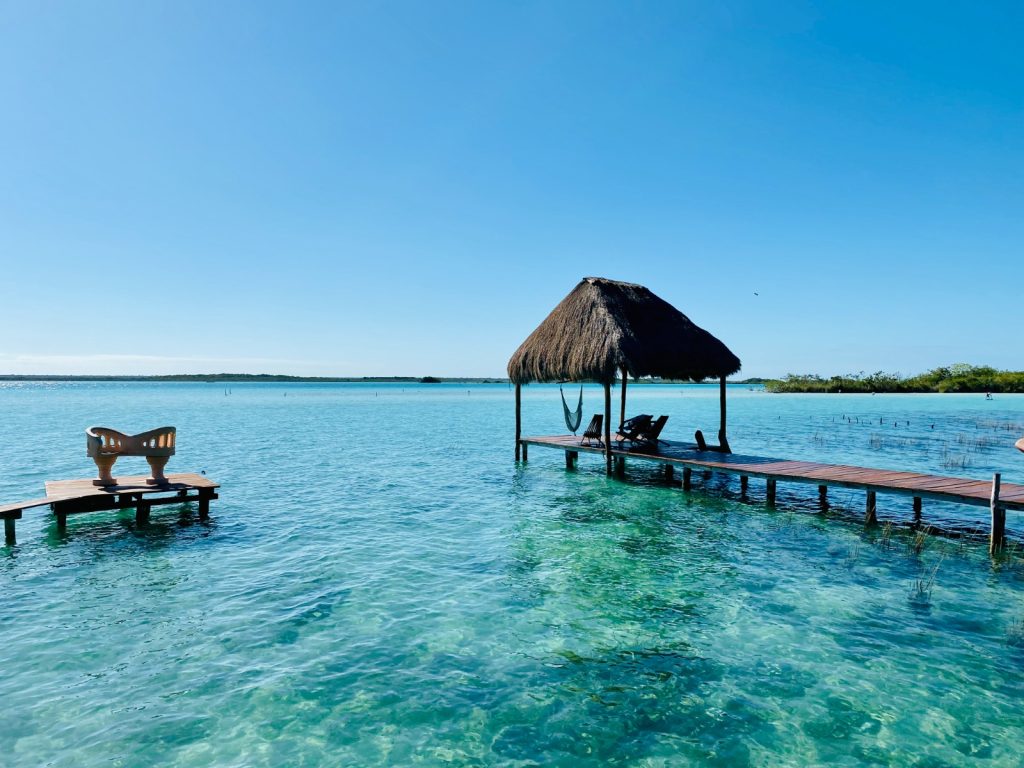 Bacalar, bekannt als die “Lagune der sieben Farben”, bietet eine friedliche und malerische Umgebung. Die kristallklaren, türkisfarbenen Gewässer und die umgebende Natur laden zur Verbindung mit dem Element Wasser und zur inneren Einkehr ein. Hier können Besucher in den Cenoten schwimmen und verschiedene Energien fühlen, Bootstouren unternehmen und die transformierende Kraft dieses magischen Ortes spüren.
